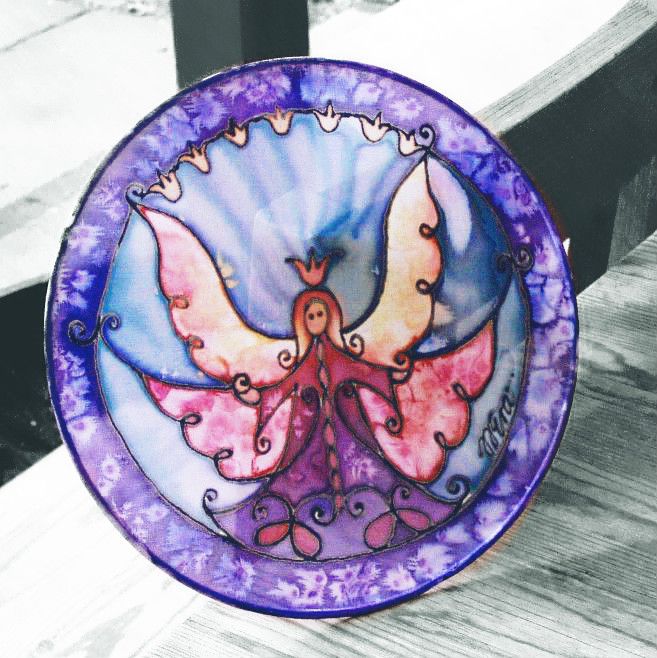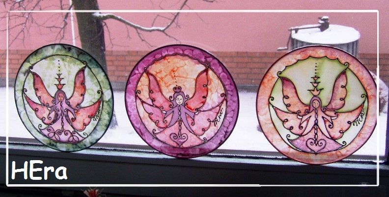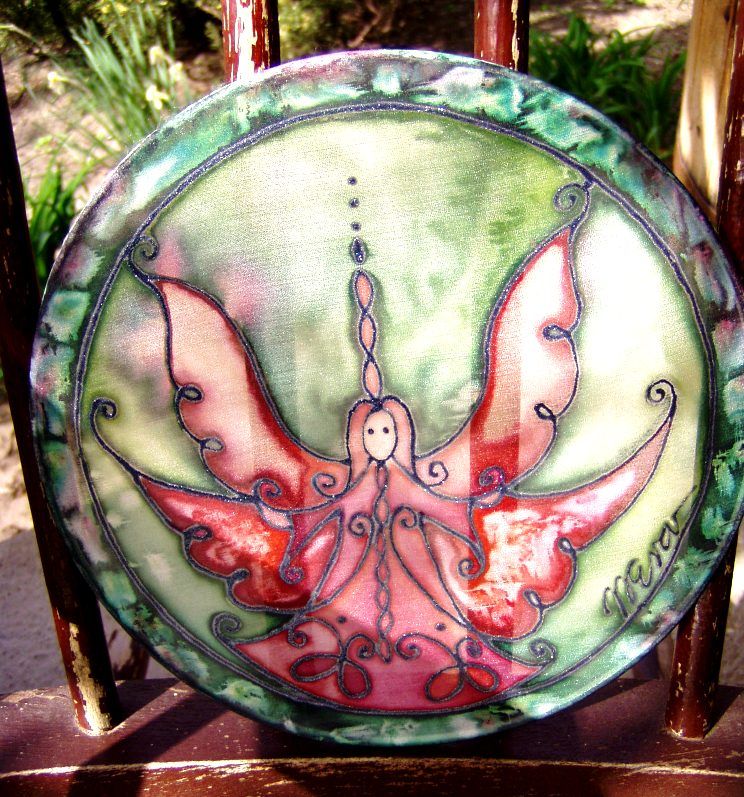 Saját zsűriztetett mintáim fém keretre ki feszített selyem ablakképre kontúrozott selyemfestés technikával festve.