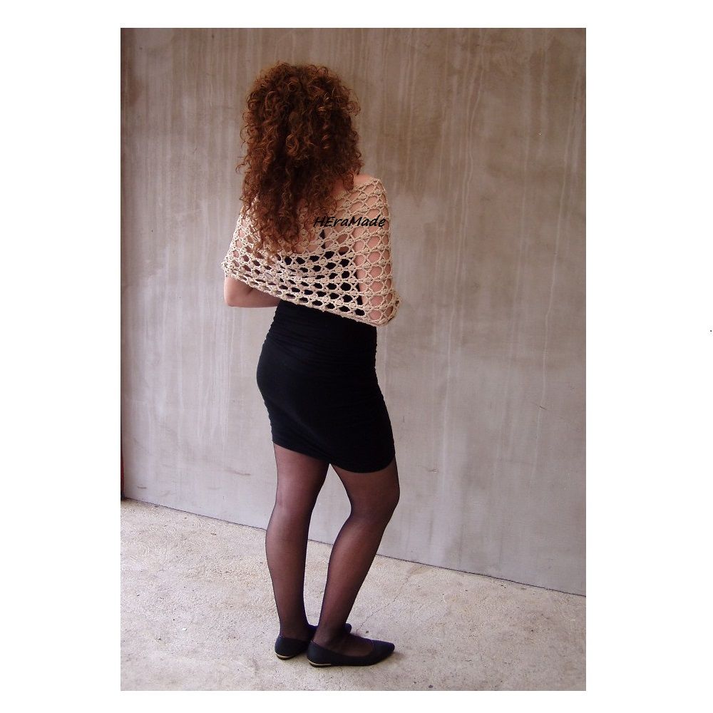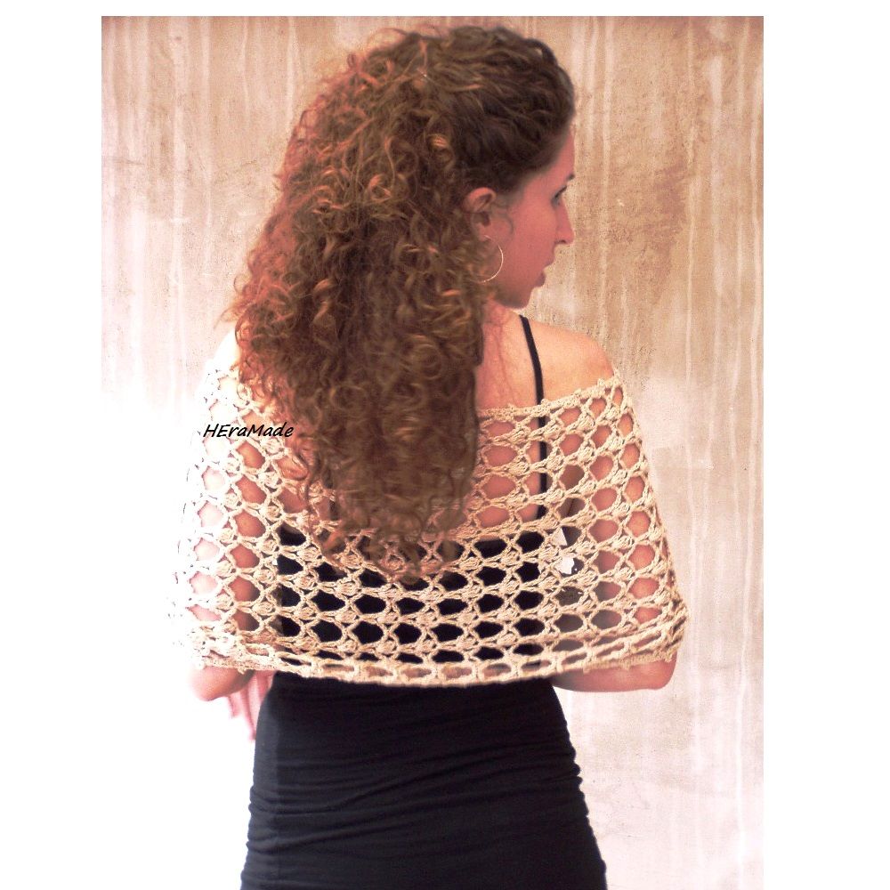 Homok színű boho poncsó. Kézzel horgolt csipke mintával, rusztikus pamut fonalból.