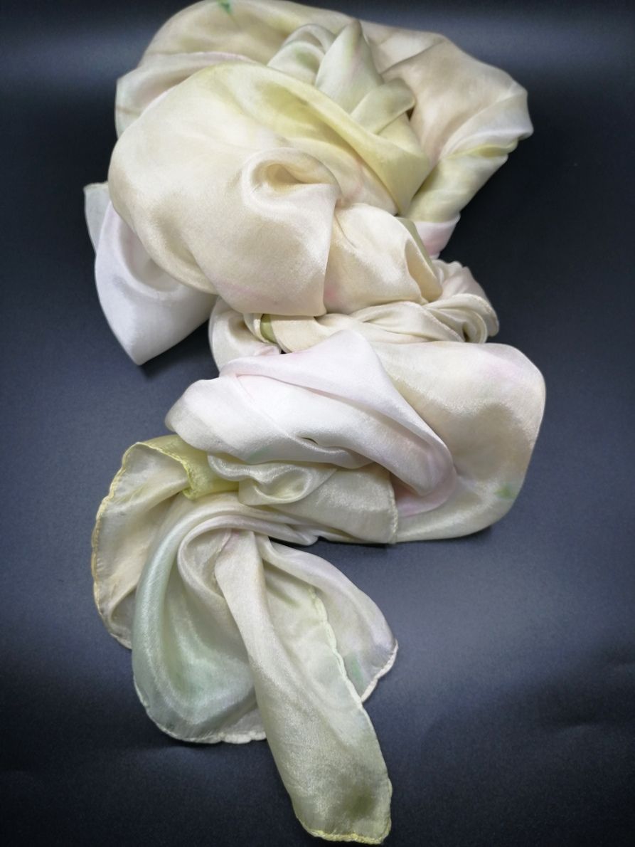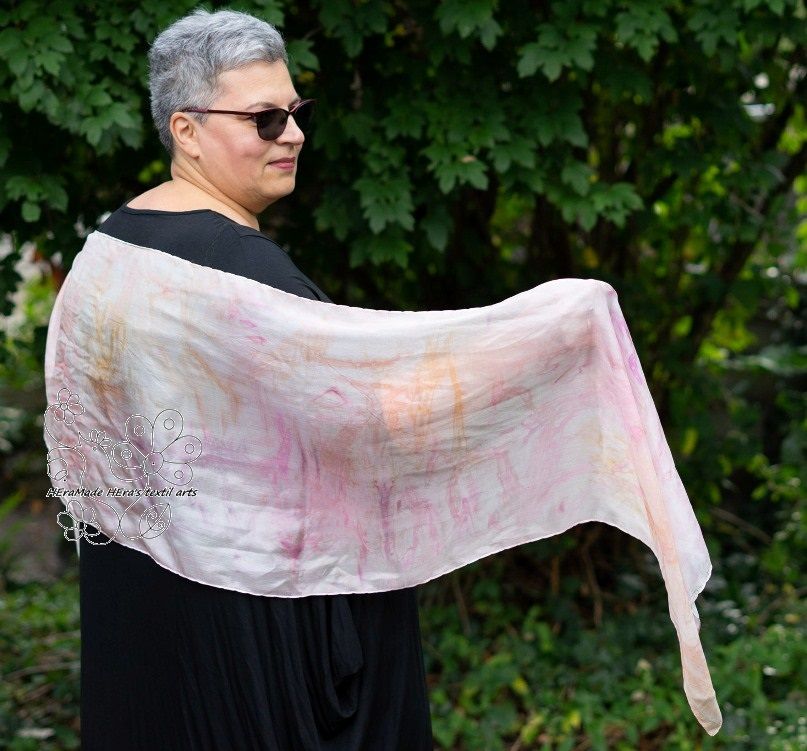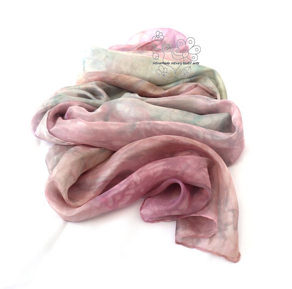 Pasztell hernyóselyem sál kézzel festett valódi selyem stóla egyedi exkluzív ajándék.