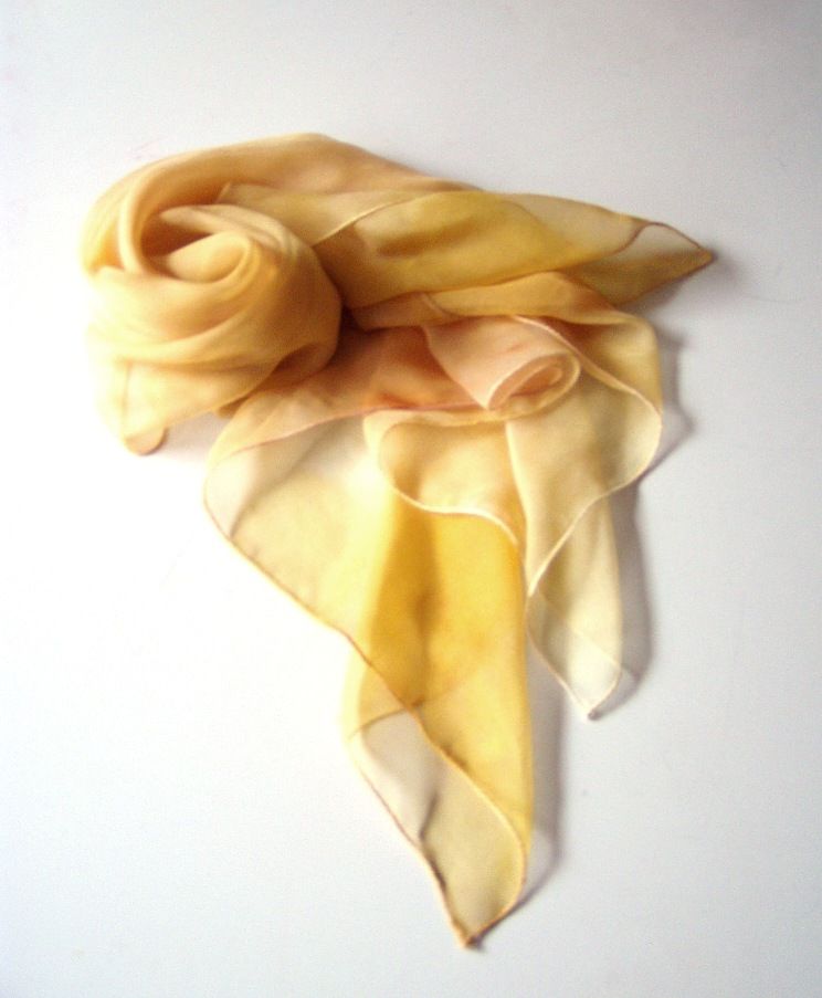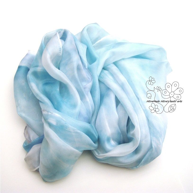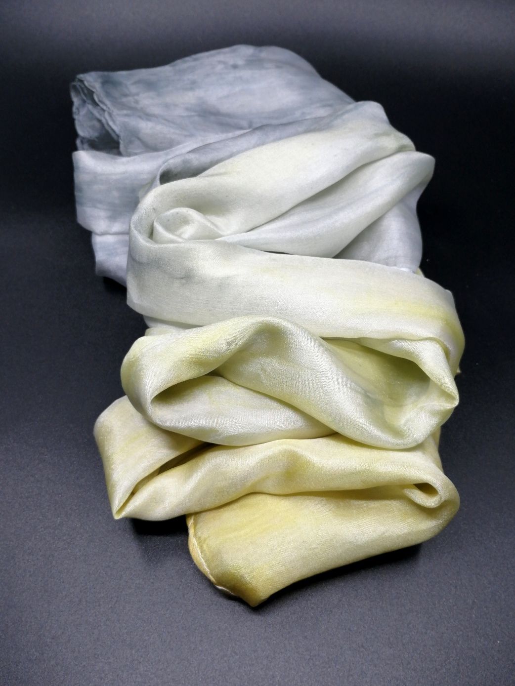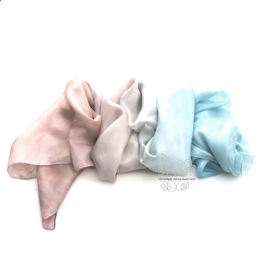 Balaton színátmenetes hernyóselyem kendő kézzel festett valódi selyem hajkendő Megrendelésre készül. 65x65cm méretben rendelhető hernyóselyem kendő Bármilyen két szín és ezeknek a színátmenetével készül.