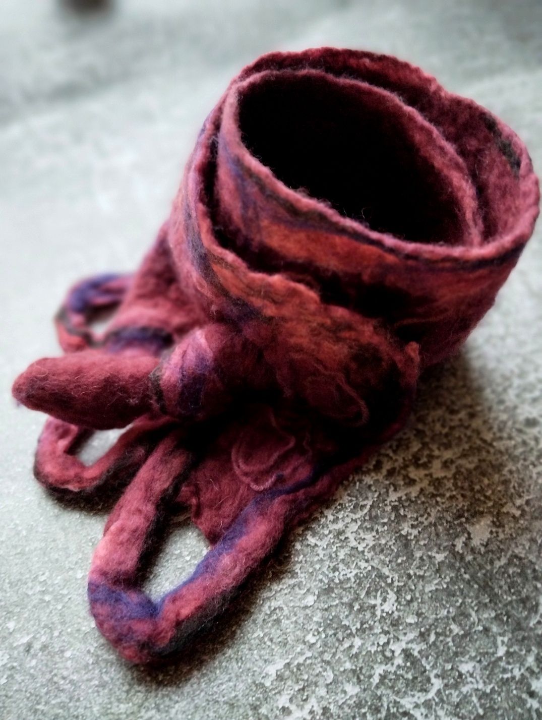 Bordó nemezelt nyakmelegítő hosszú gyapjú sál loop rojtokkal