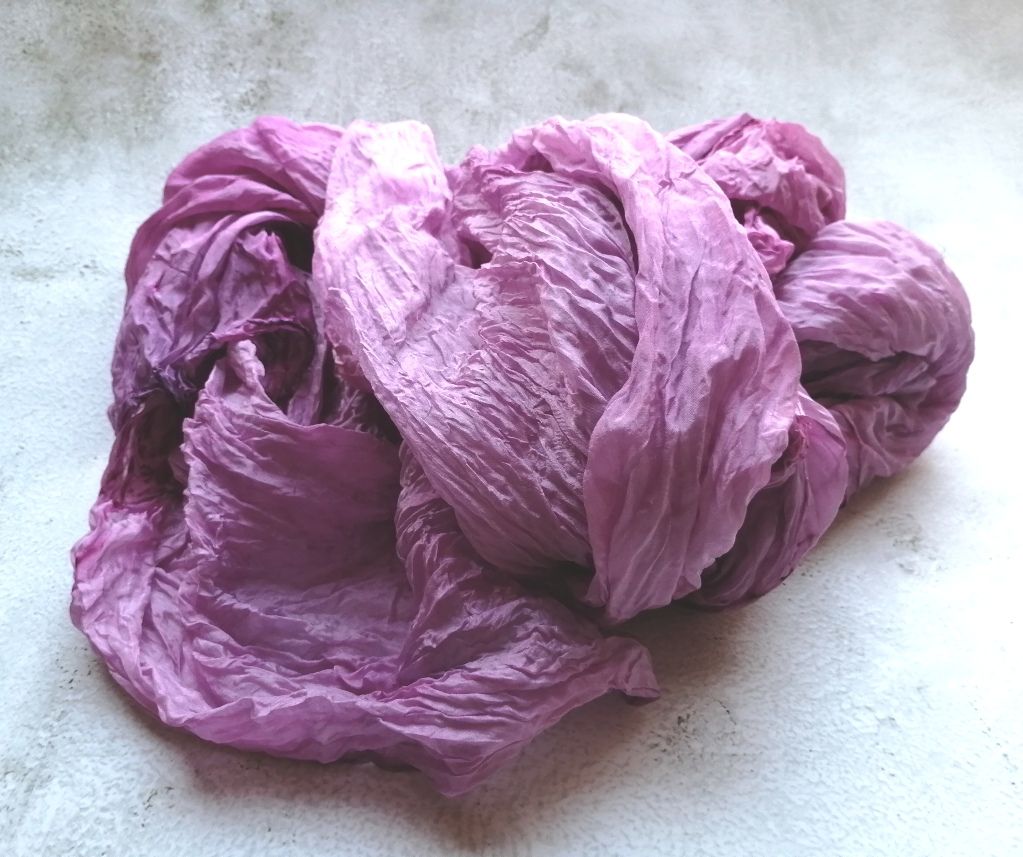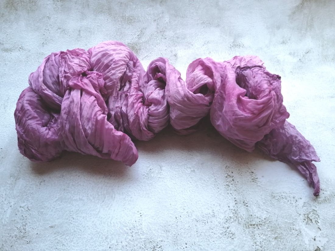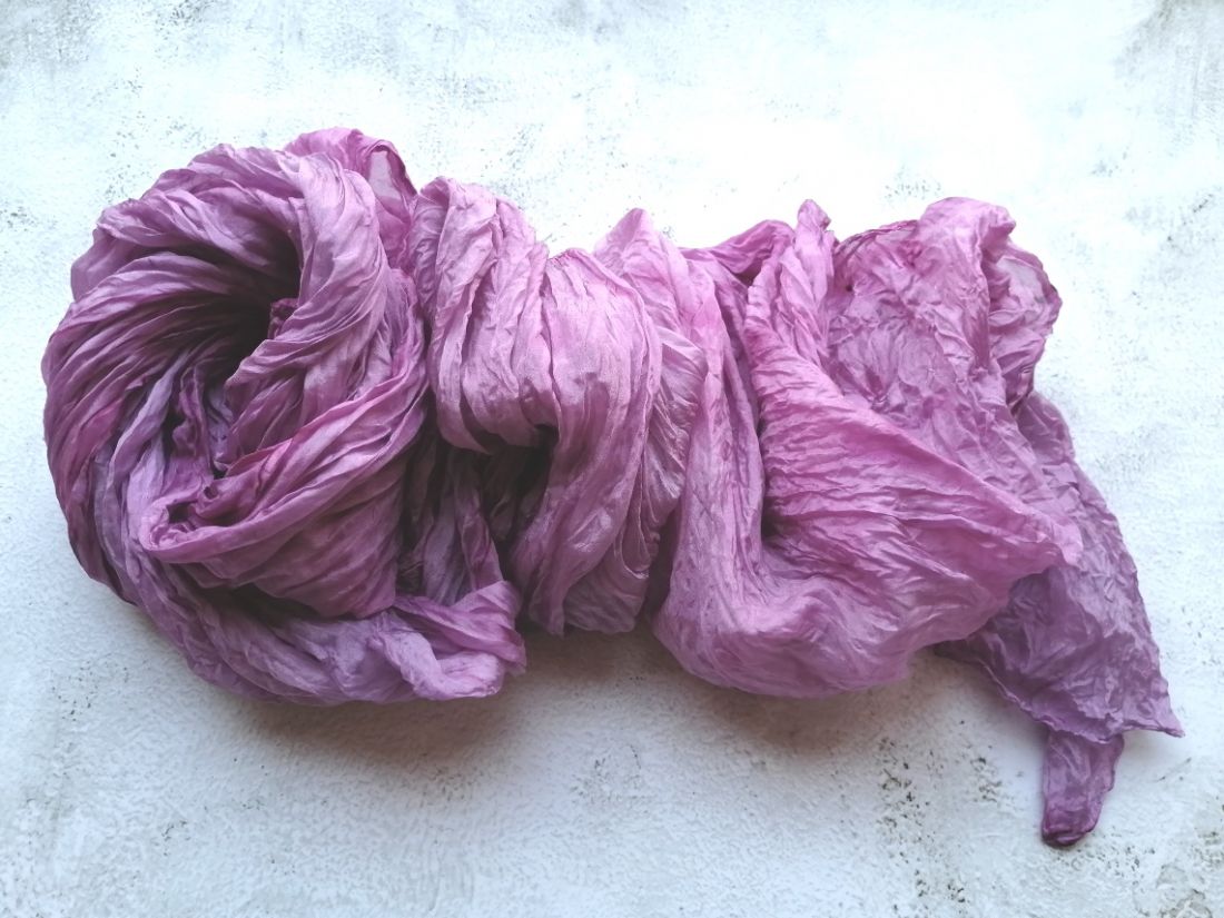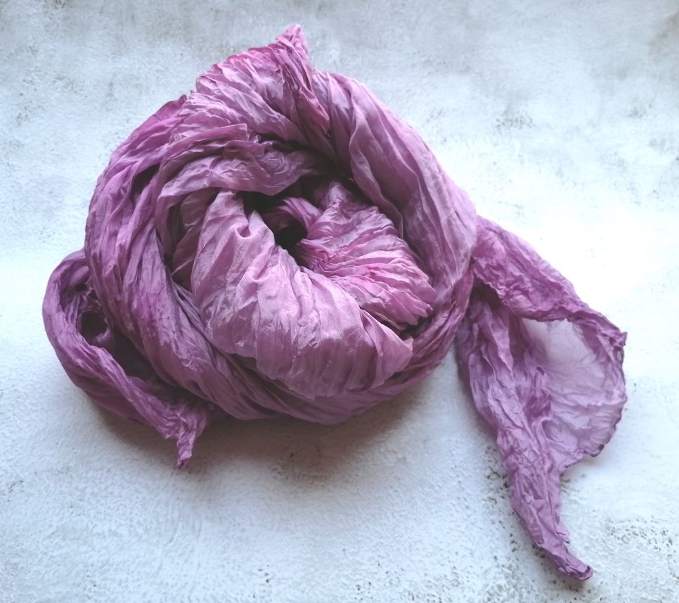 Hernyóselyem óriás sál ráncos gyűrt lilás rózsaszín színárnyalat valódi selyem stóla