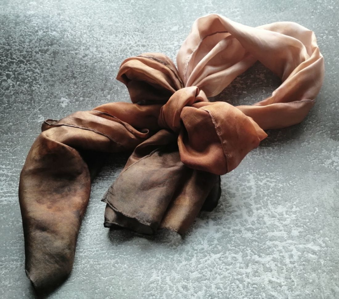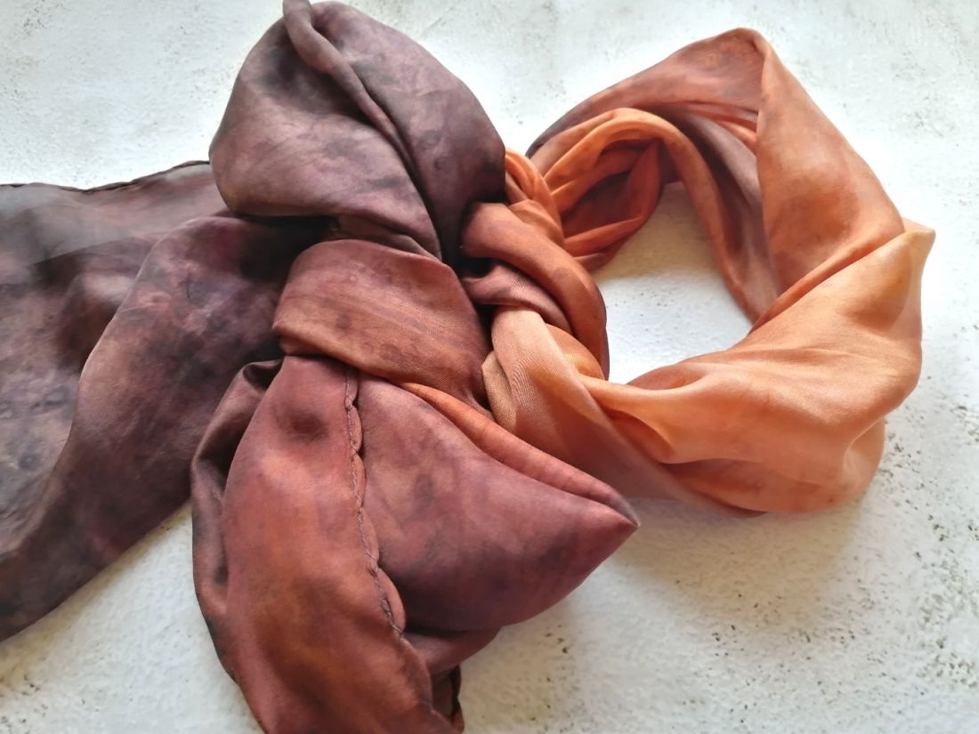 Hernyóselyem sál kézzel festett ombre csokoládé és púder színátmenetes stóla női sál.