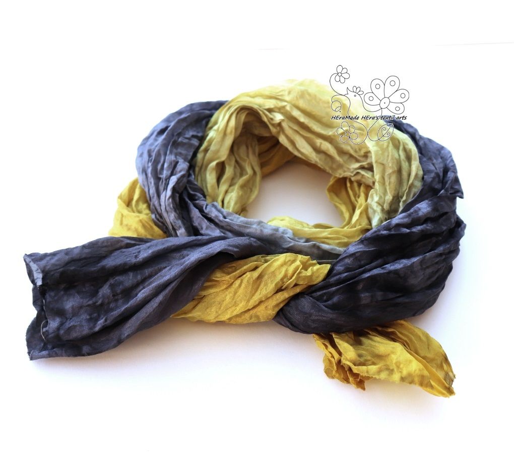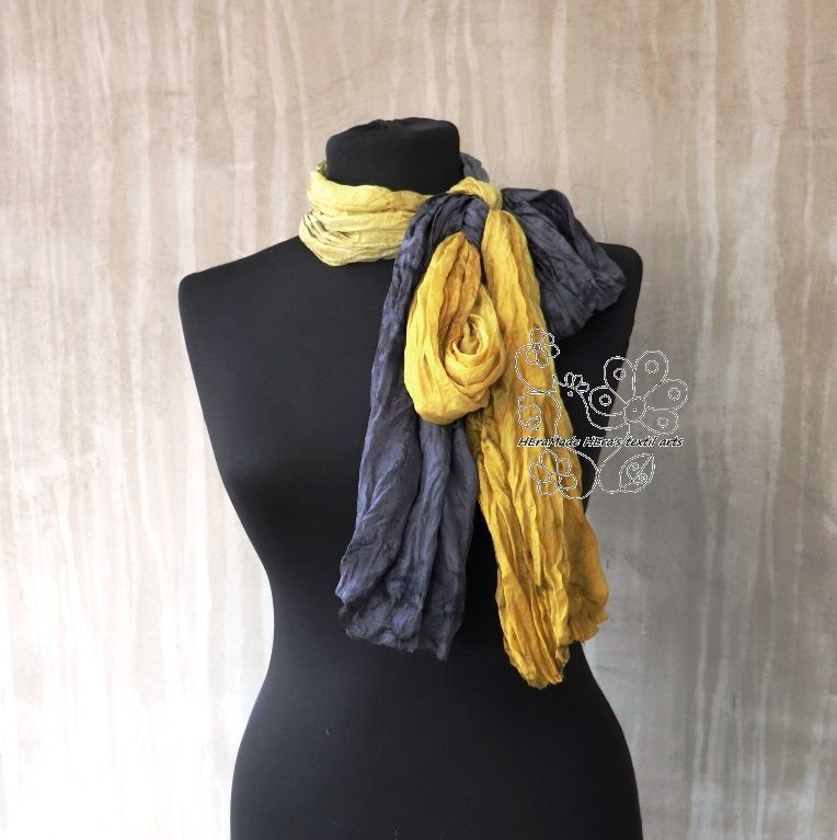 Színterápia borúsabb napokra. Ez a sálam a mustár és fekete kombinációja. Hosszú, keskeny gyűrt sál.