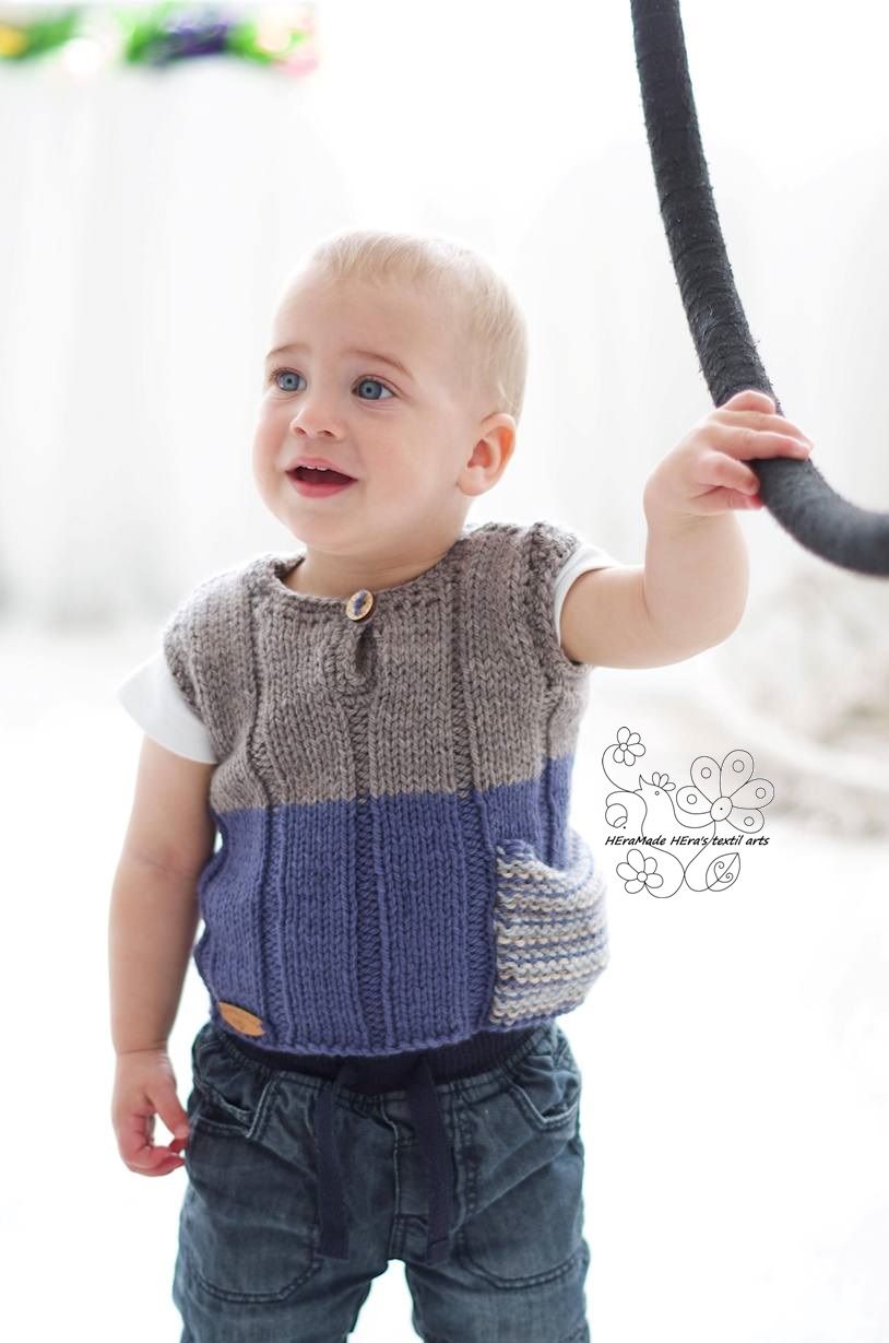 Gyapjúból kötött vastag, meleg (chunky) mellényke vagány legénykéknek. Oldalán óriási zsebbel a kincsek gyűjtéséhez. Nyaka nyitható fagombbal záródik.