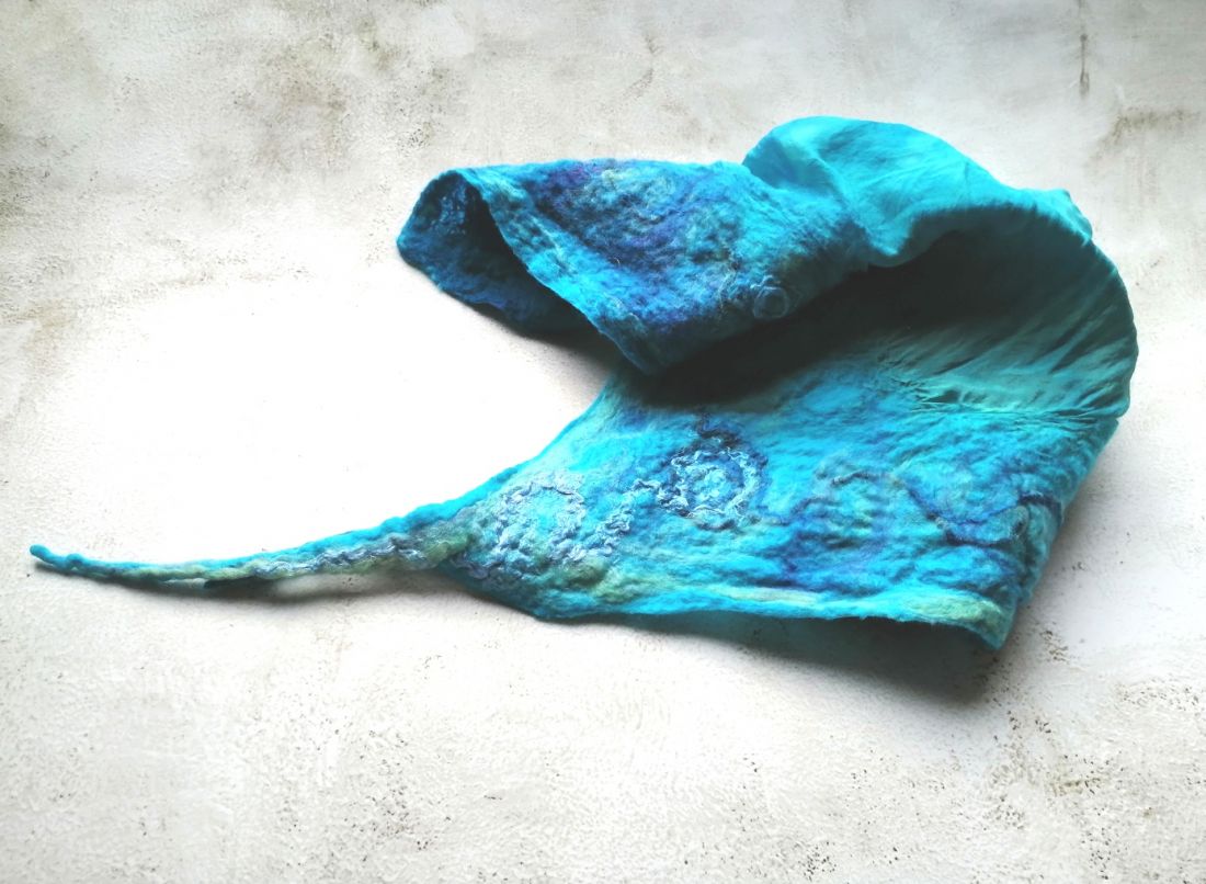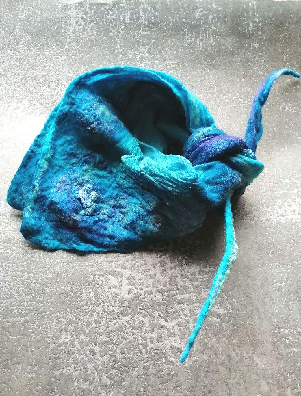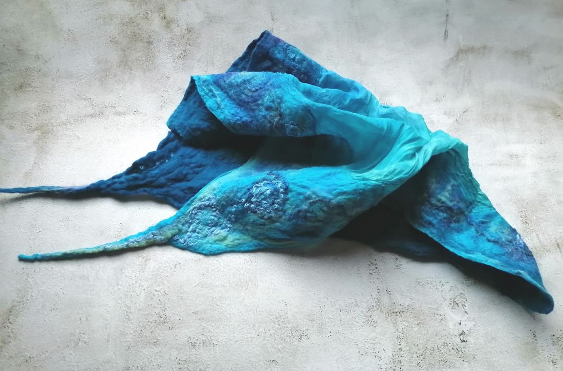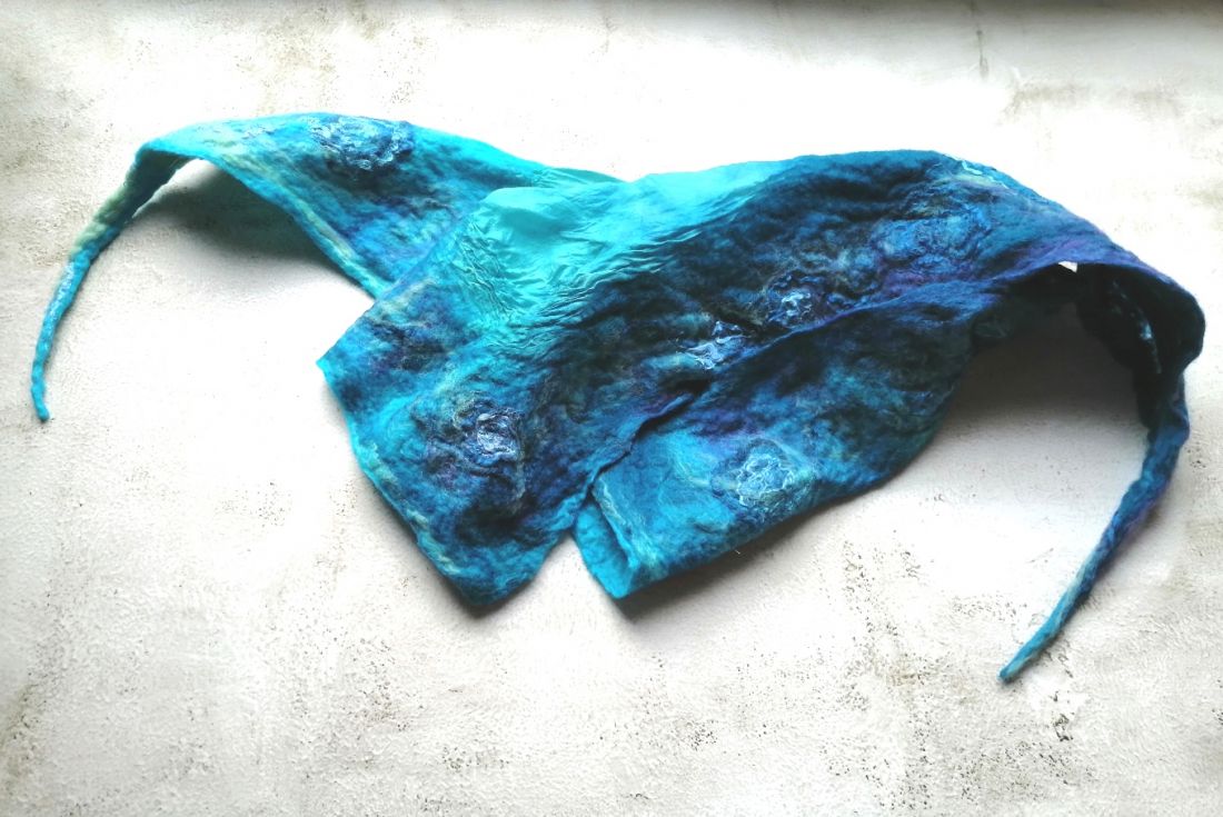 Tinta kék selyem gyapjú sál, azaz nuno nemez. A hernyóselyem és a merinói gyapjú házassága. Ha te is valami extrán különlegesre vágysz, akkor ezt pont neked készítettem! Exkluzív ajándék.