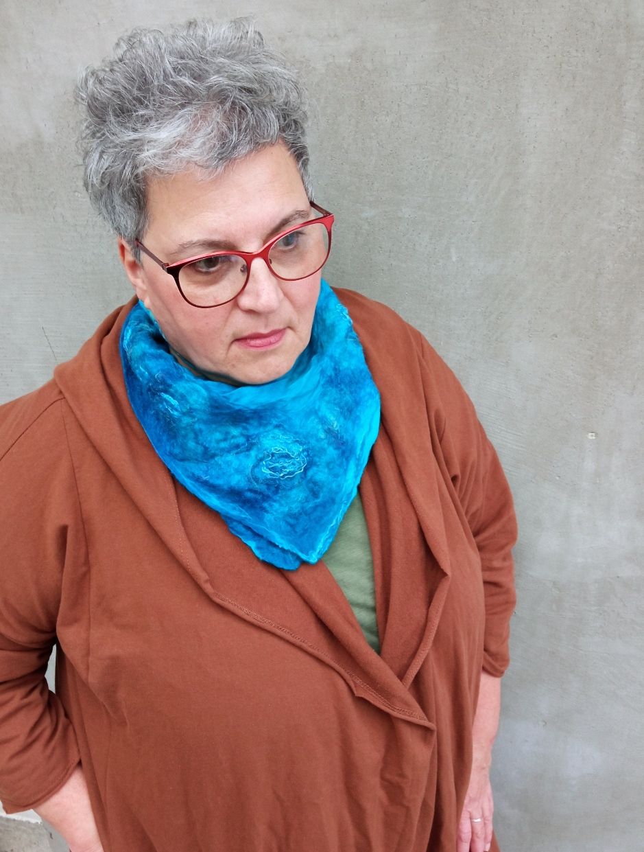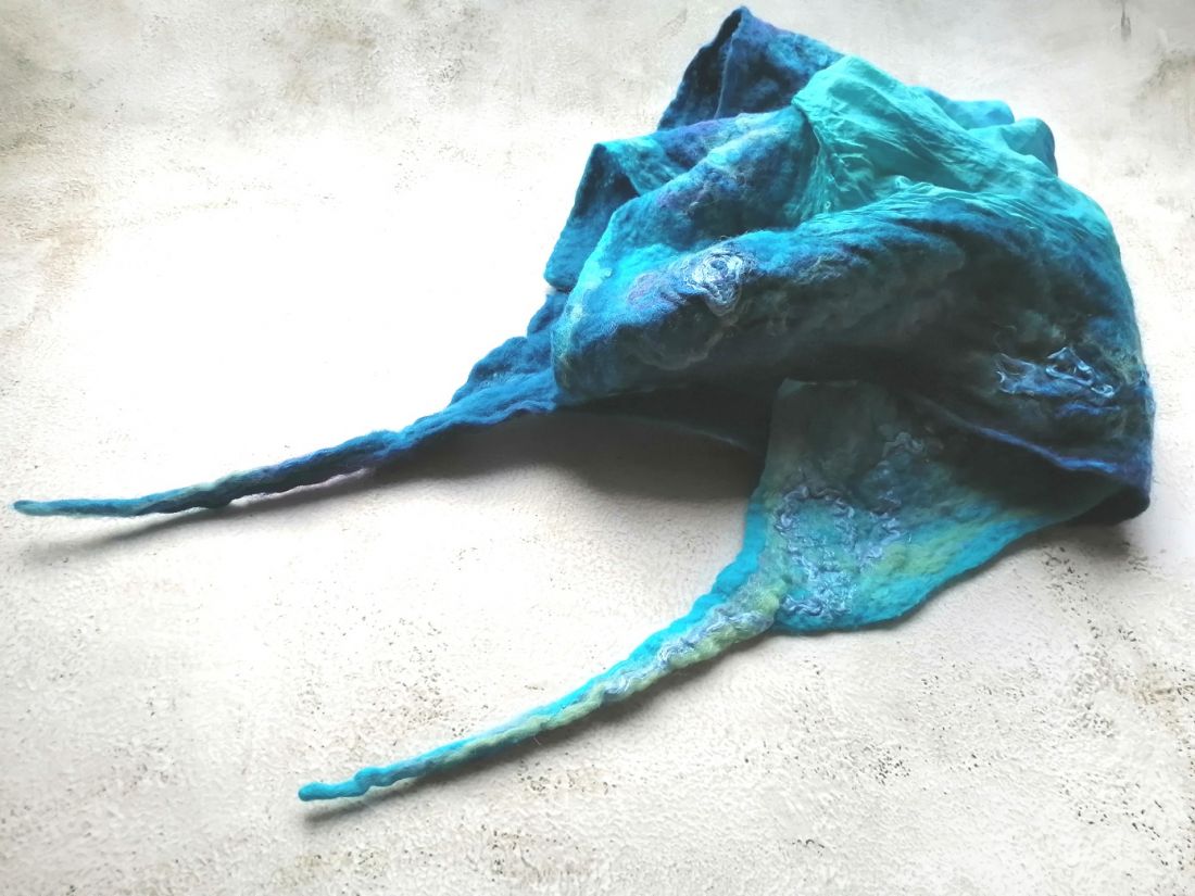 Türkiz fények gyapjú hernyóselyem kendő sál nuno nemez