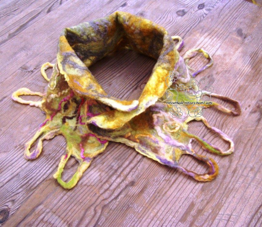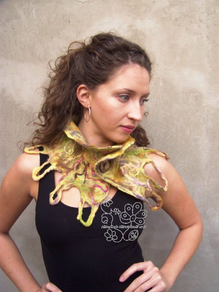 Nyakmelegítő sálamat nemezelés technikával készítettem a hideg, hűvös, szeles időszakra készült. Ha te is fázós nyakú vagy és még a különleges darabokat is szereted akkor vedd meg bátran! A kedvenced lesz! Ha ajándékba szeretnéd adni válassz divatszínt vagy az ajándékozott kedvenc színében vásárold vagy rendeld meg.
