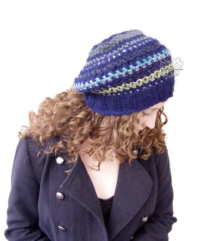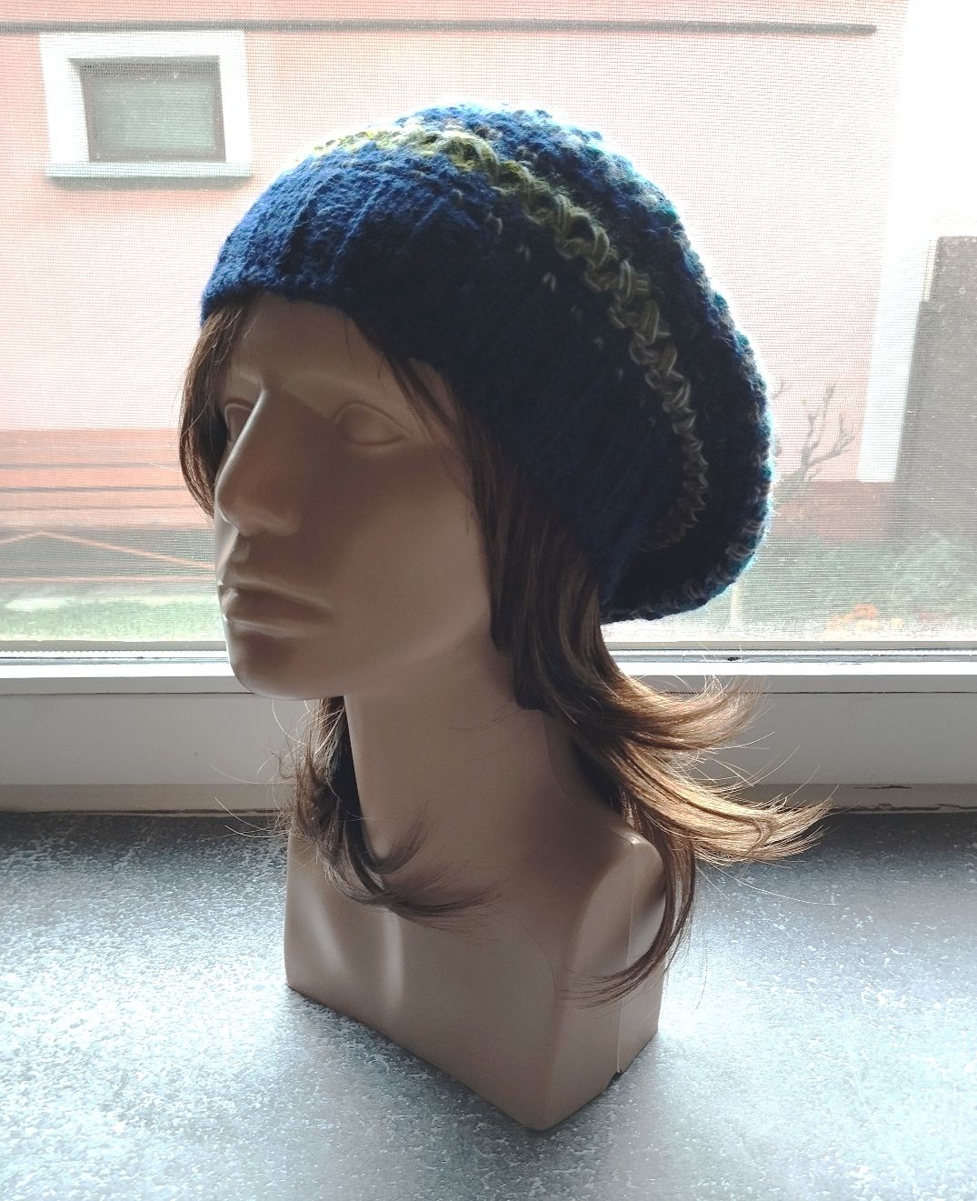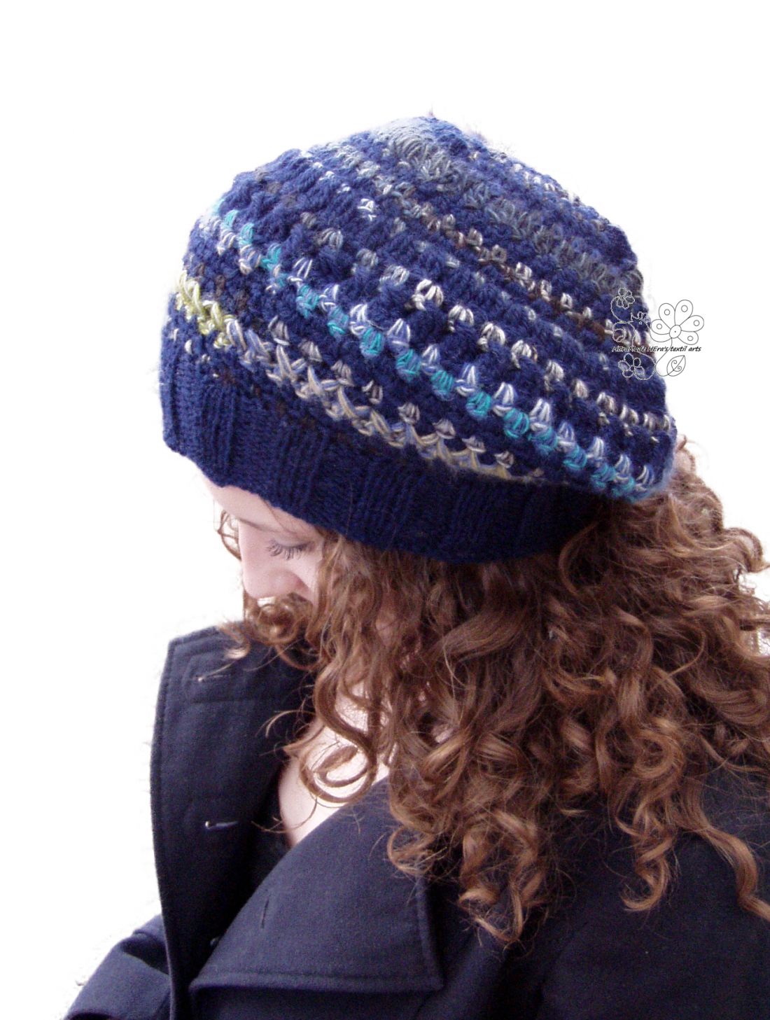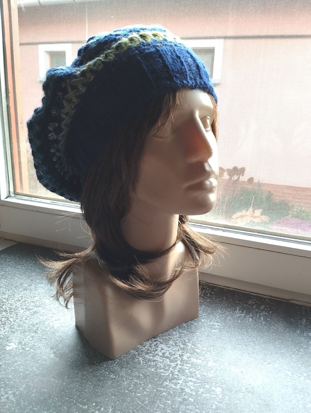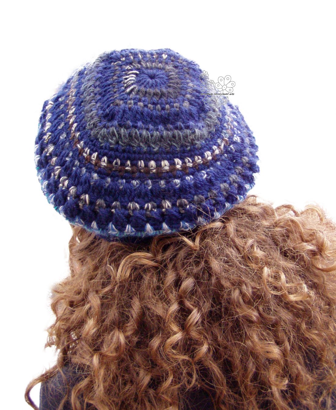 Barett sapka sötétkék női oeko gyapjú sapka boho horgolt kötött meleg sapka