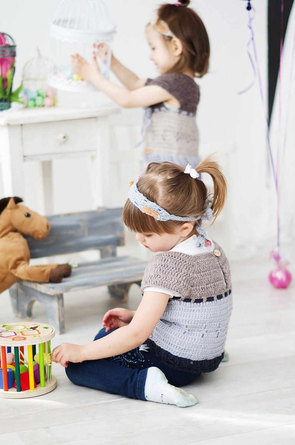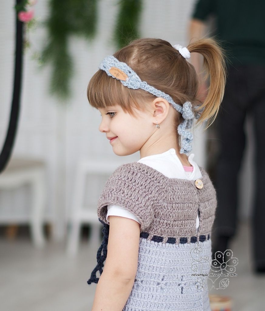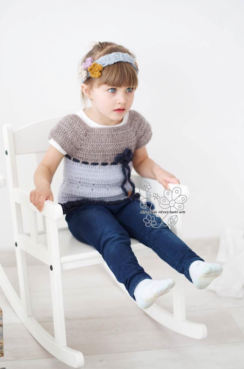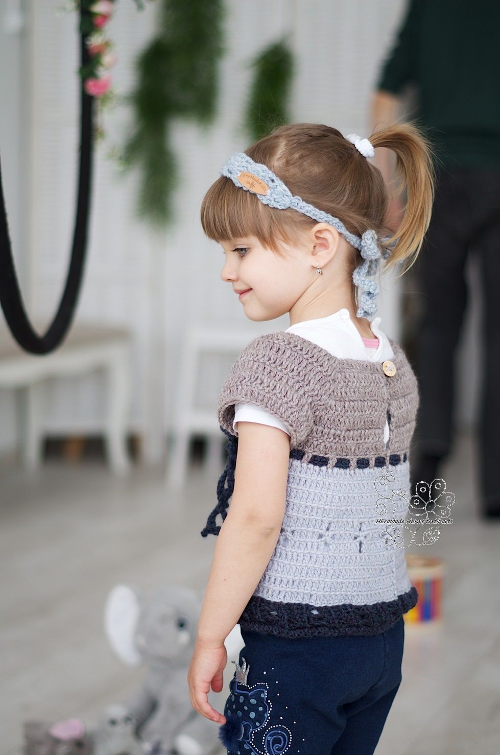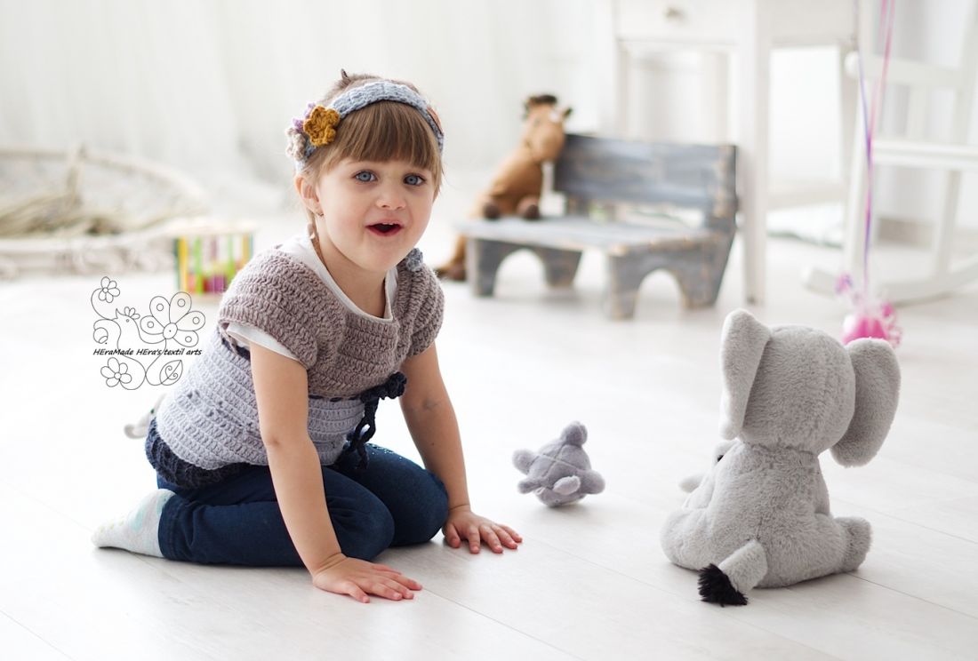 Romantikus empire fazonú kézzel horgolt mellény pici lánykáknak. Mert kicsi nőciként is imádjuk a csini rucikat! Hátul a nyakkivágása gombbal záródó hogy könnyű legyen felvenni. Tökéletesen védi a gyermek derekát. Alatta rövid vagy hosszú ujjú pólóval tökéletes a játékhoz. Kis ruha felett igazi romantikus stílust érhetünk el vele. Mell alatt megkötővel összehúzható, alját csipkeminta díszíti. Stílusa igazi HEra design kicsit boho romantikus és egyben praktikus.