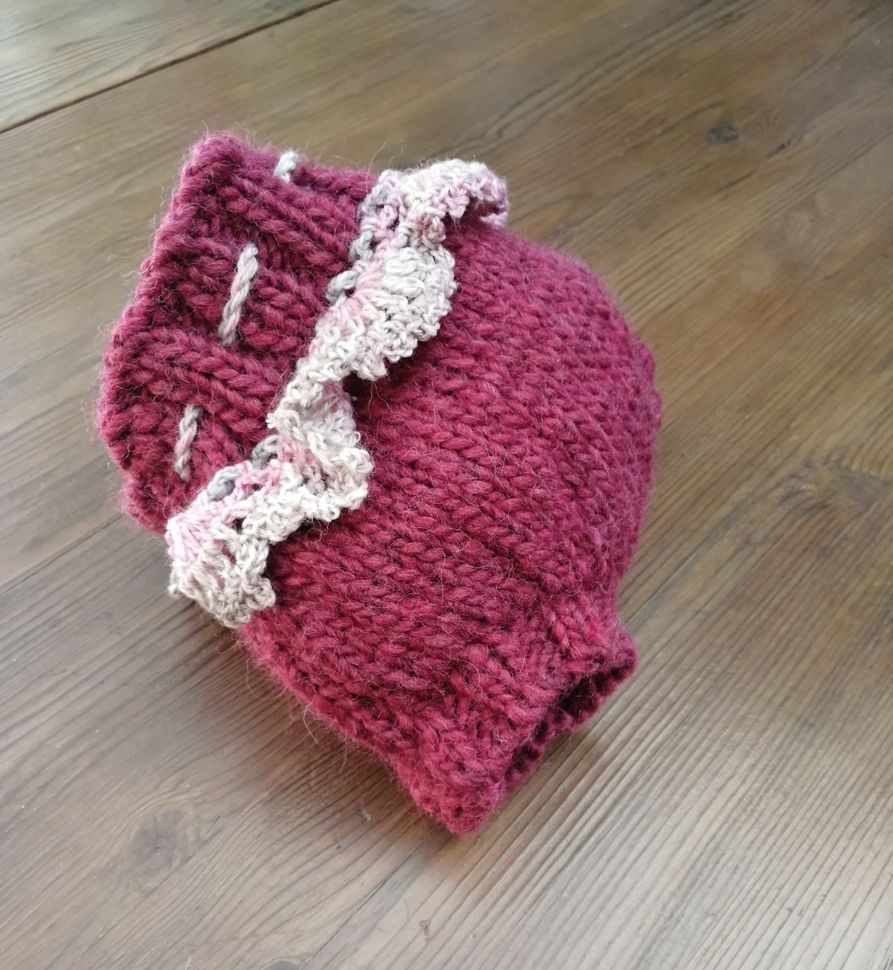Gyapjú füles sapka 1/2-1 évesekre pomponnal, öko gyapjúból, kézzel horgolva(oeko-tex gyapjú).