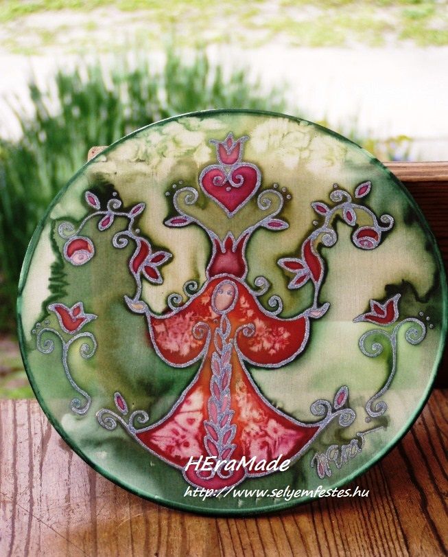 Saját zsűriztetett mintáim fém keretre ki feszített selyem ablakképre kontúrozott selyemfestés technikával festve.