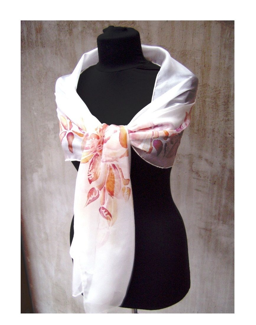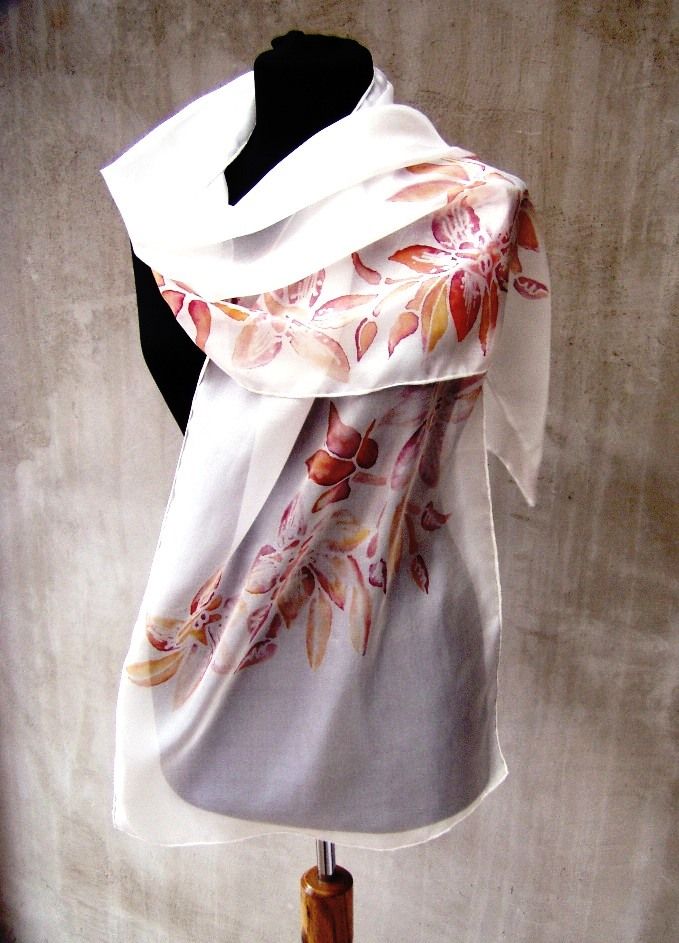 Orchideák női valódi selyem sál fehér hernyóselyem stóla egyedi exkluzív ajándék