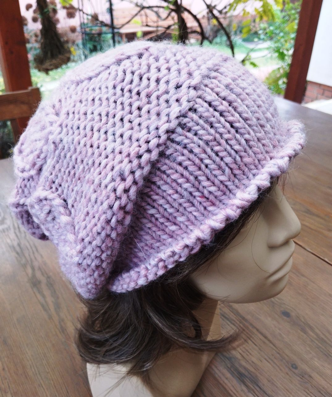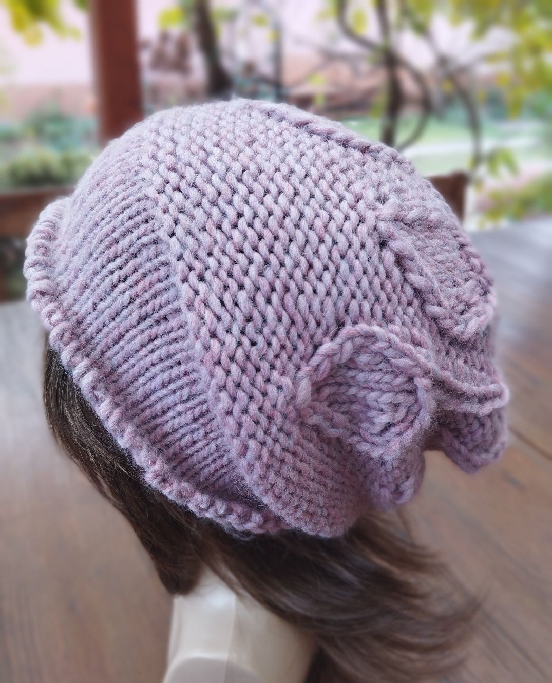 Saját tervezésű laza slouchy forma. Mintája leves kötésminta. Széles passzé ami fejre simul. Húzhatod a homlokodra vagy hagyd kilátszani a hajad.