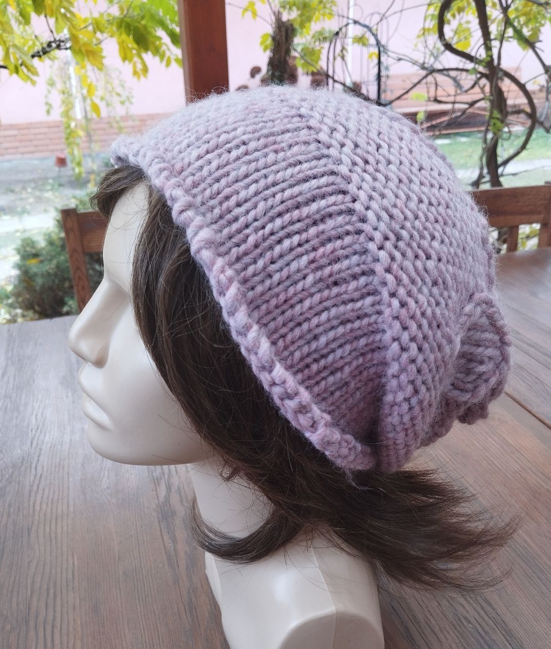 Kötött laza női slouchy sapka, vastag puha, meleg oeko-tex gyapjúból