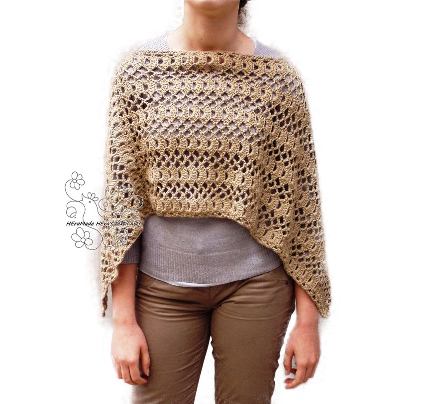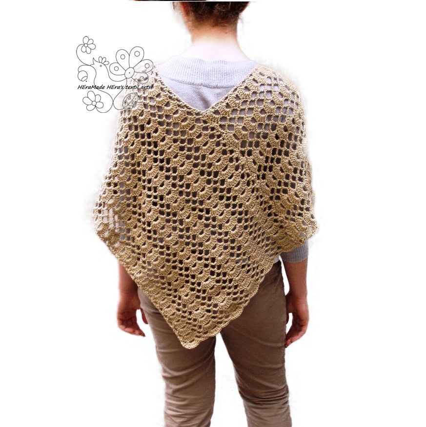 Homok színű poncsóm pont egy ilyen kézzel horgolt kézműves darab.