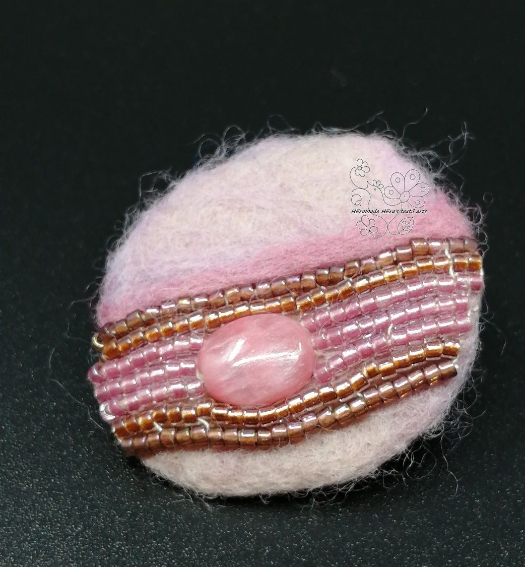 Rózsaszín praliné bross bonbon kitűző boho ékszer, ”színédesség” diétás poén ékszer