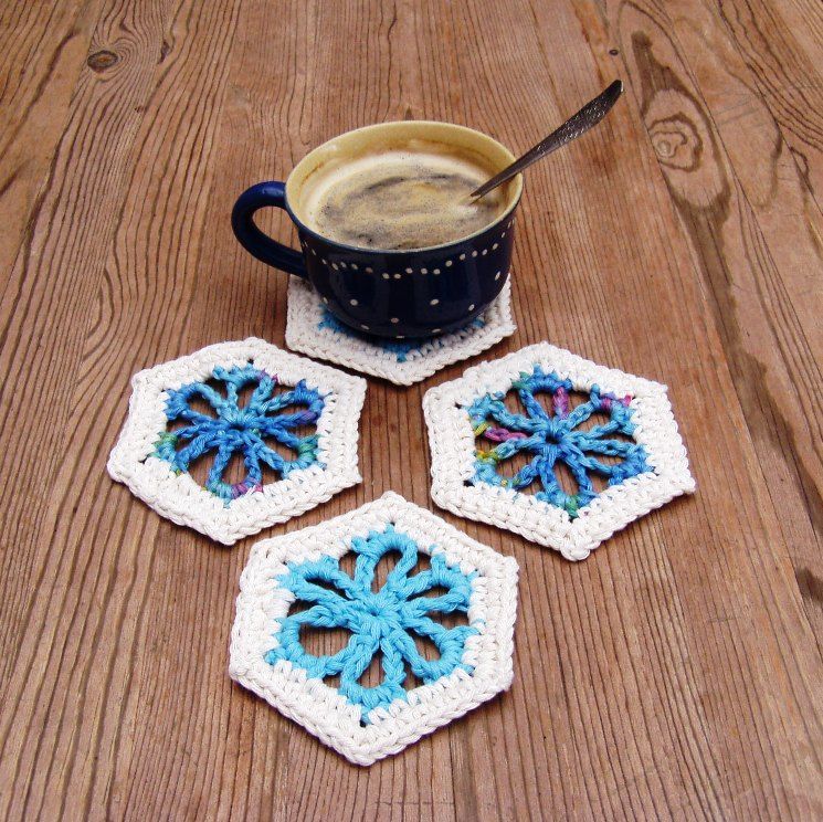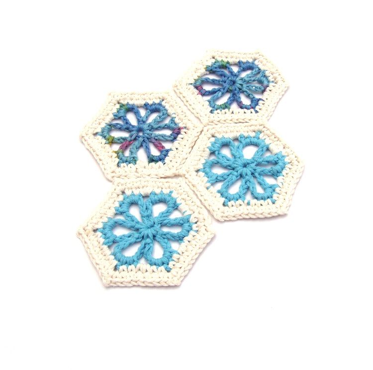 Kék virágos boho poháralátét, bögrealátét, fürdőszivacs, karácsonyi csillag