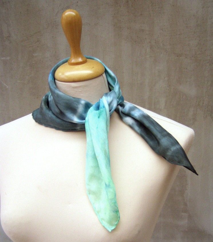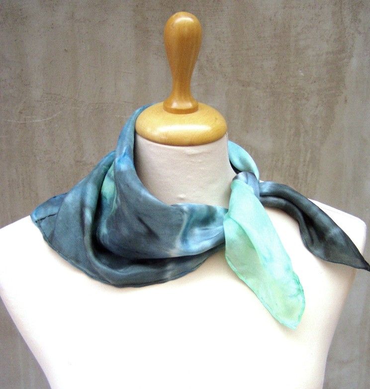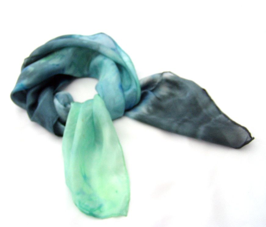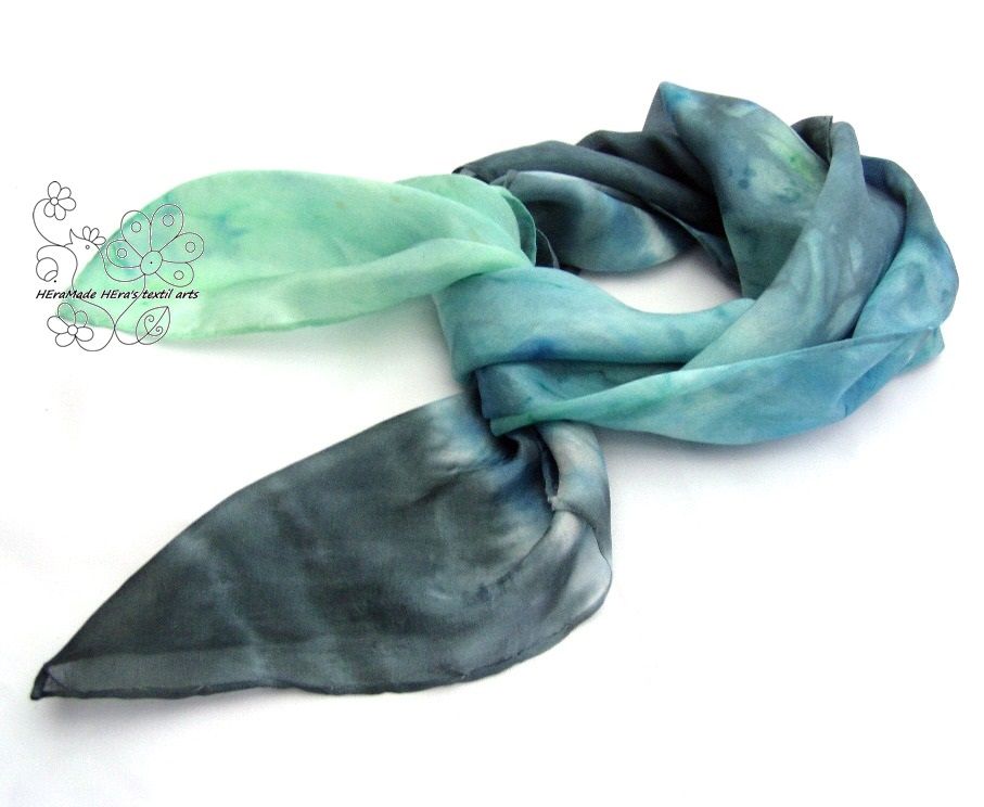 Balaton színátmenetes hernyóselyem kendő kézzel festett valódi selyem hajkendő Megrendelésre készül. 65x65cm méretben rendelhető hernyóselyem kendő Bármilyen két szín és ezeknek a színátmenetével készül.