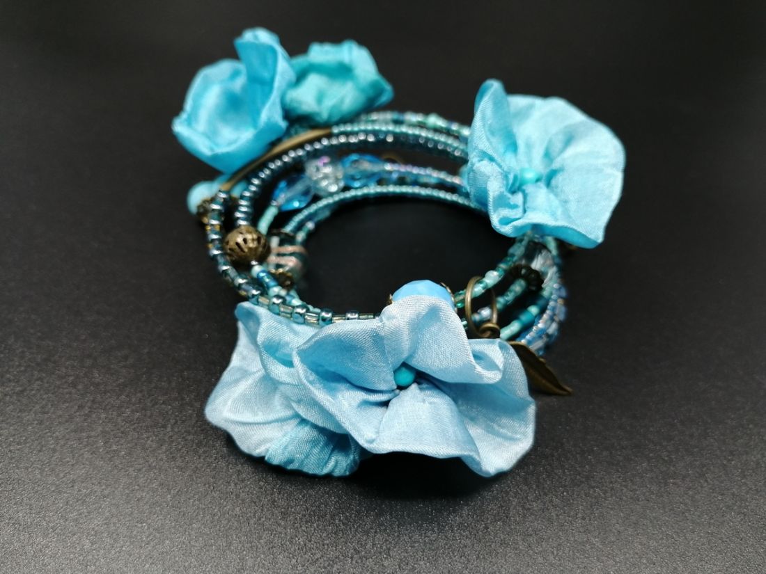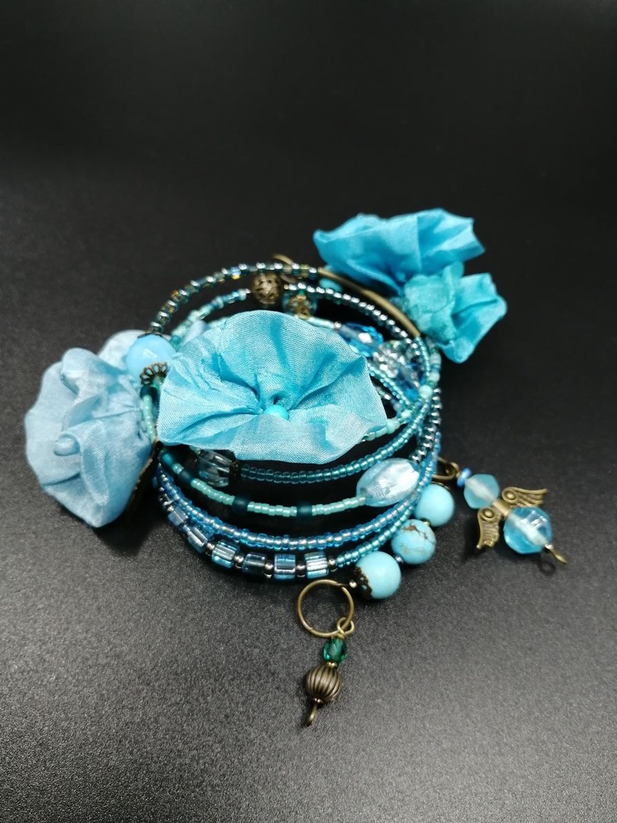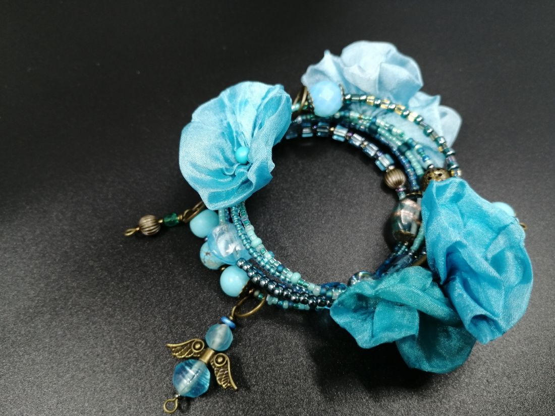 Kézzel festett selyemből varrt virágokkal készített boho karkötő olyan nőknek akik szeretik a boho stílust! Ha te is közéjük tartozol akkor ezt a textil gyöngy karkötőt szeretni fogod! Ha ajándékba veszed, csak a megajándékozott kedvenc színeit kell tudnod, telitalálat lesz a forma...